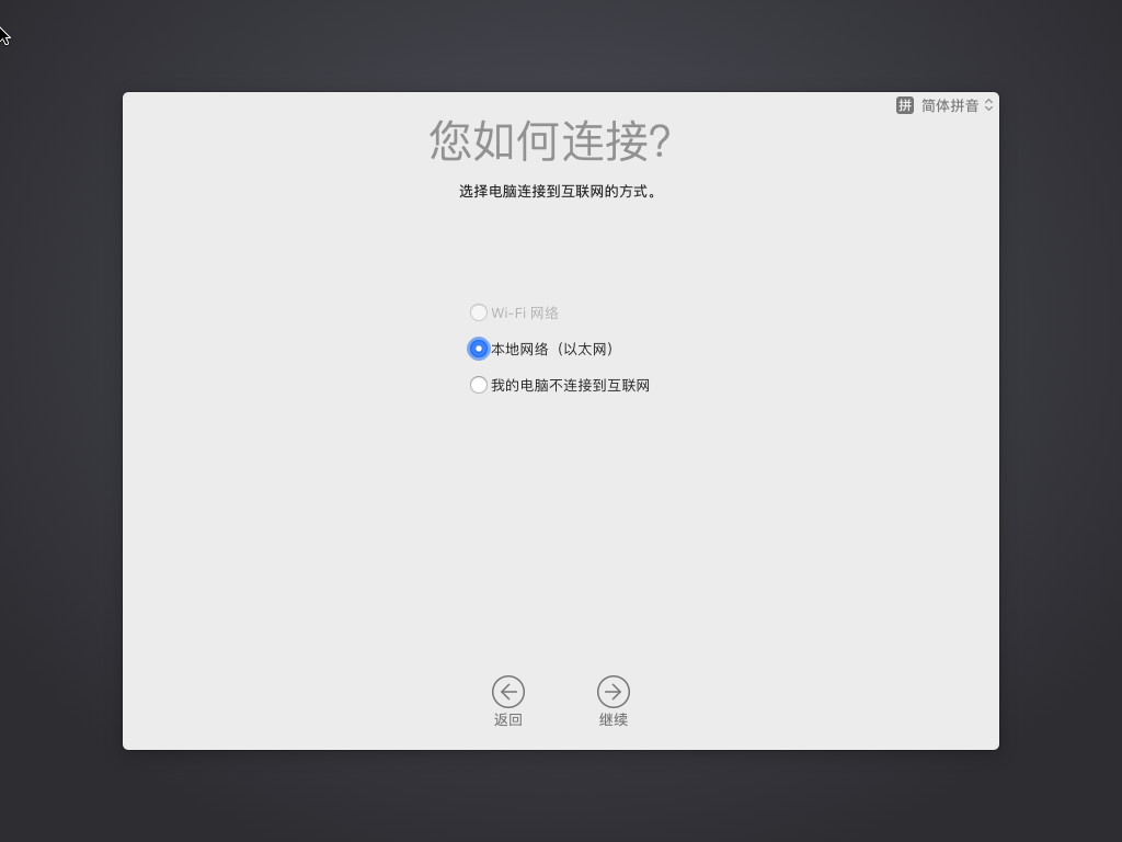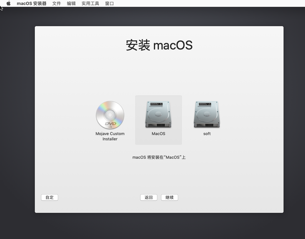分区完成后会自动跳转到安装界面选择MacOS点击继续