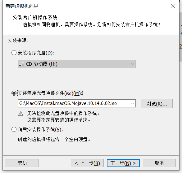 这里踩了坑,由于mac的原生镜像是.dmg结尾的,vm需要CDR/ISO格式的镜像包,本来想着网上下一个最新的结果需要注册,还需要充值,算了想着自己制作一个镜像,于是下载了最新的10.14.6官方原版镜像。百度到[UltraISO](https://cn.ultraiso.net/ "UltraISO")这么一个镜像制作工具,可以将dmg转成cdr或者iso。选择文件后点击工具格式转换